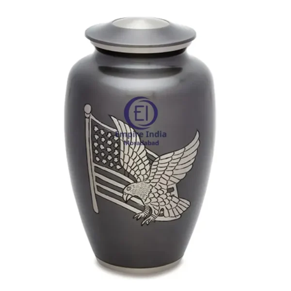 Engraved Aluminum Cremation Urn, Eagle and Flag Urn for Ashes, Patriotic Memorial Urn, Veteran Cremation Urn, Bald Eagle Funeral Urn, American Flag Ashes Urn, Matte Black Cremation Urn, Empire India Metal Urns, Urn Manufacturer Moradabad, Military Tribute Cremation Urn, Custom Engraved Urn for Ashes, Made in India Cremation Urns