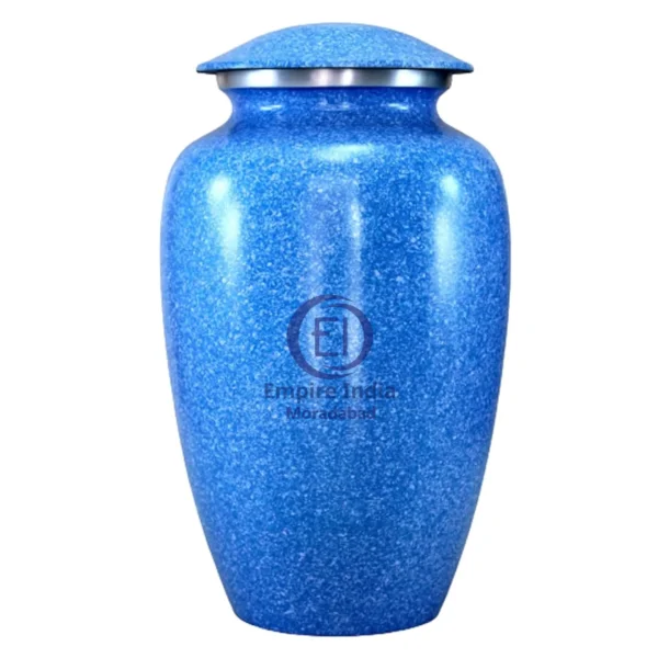 Blue aluminum cremation urn, Meena coated urn, Ocean blue marble urn, Handcrafted memorial urn, Urns for ashes India, Aluminum urn for adults, Funeral urn manufacturer, Empire India urn, Durable cremation urn, Decorative blue urn,