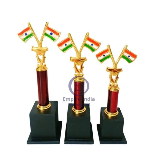 Indian flag trophy set, Republic Day award trophy, Independence Day memento, tricolor patriotic trophy, school event award, national pride trophy gift, Empire India Moradabad, flag-themed trophy, award for Indian celebrations, best Indian flag award design, buy patriotic trophy online.